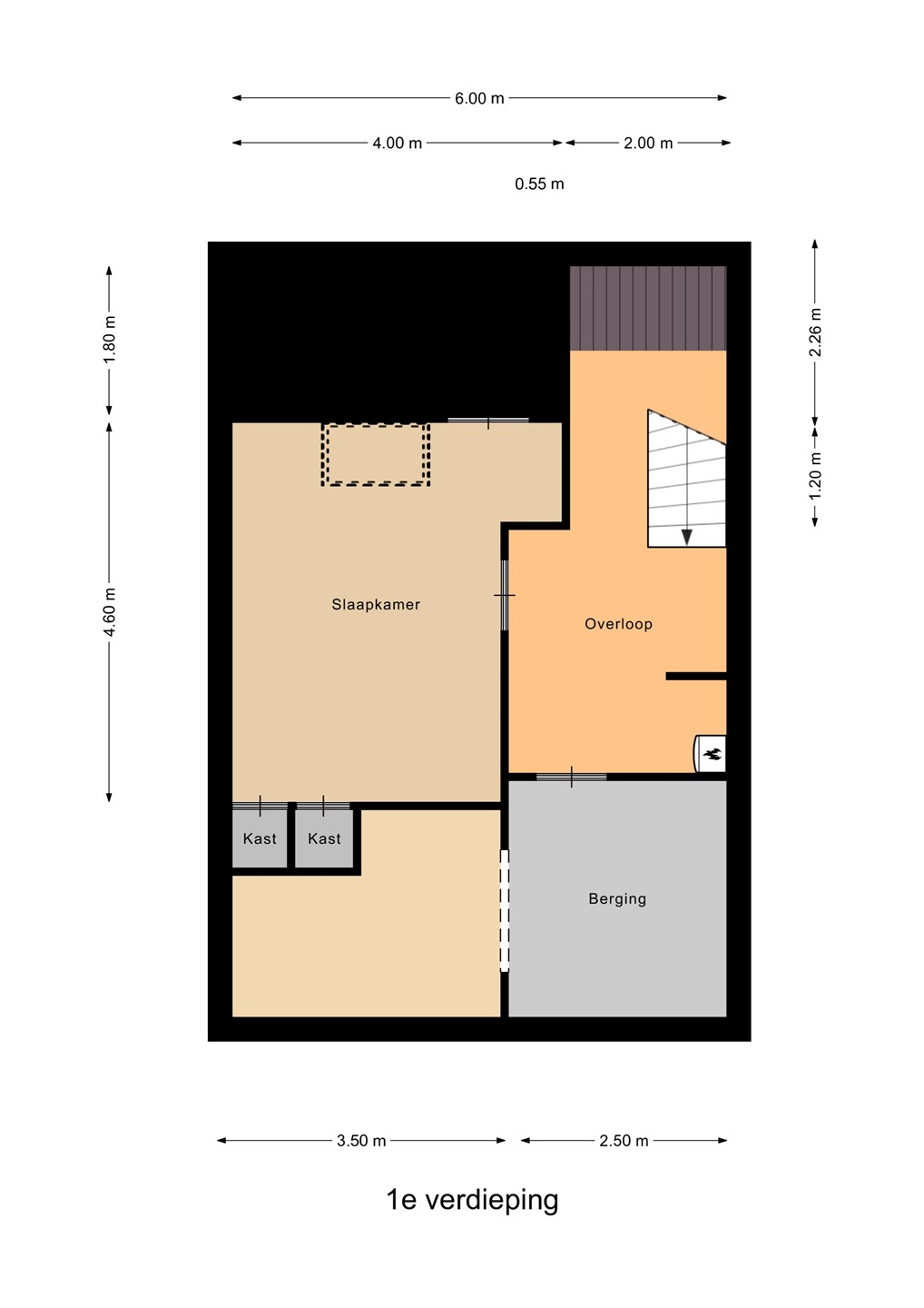 Overloop, circa 10 m², v.v. cv-ketel (bj. 2016) en toegang tot slaapkamer en berging.
