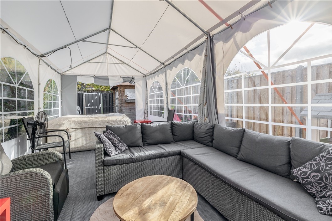 De achtertuin ligt op het zuidoosten en beschikt over een achterom en een houten tuinberging, waardoor u optimaal kunt genieten van zon en privacy. Op korte afstand bevindt zich een ruime speeltuin, perfect voor gezinnen met jonge kinderen.