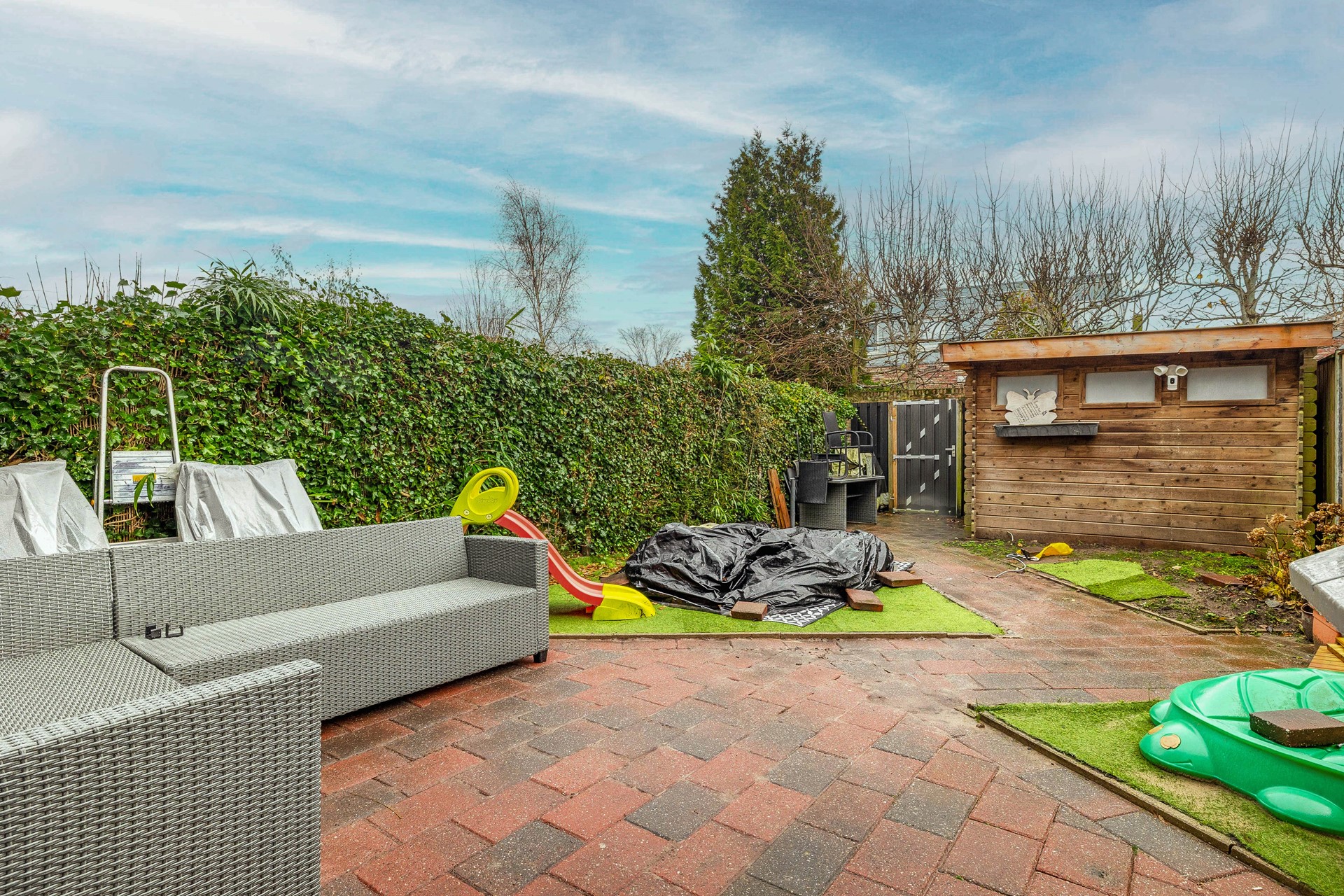 De achtertuin ligt op het zuidoosten en beschikt over een achterom en een houten tuinberging, waardoor u optimaal kunt genieten van zon en privacy. Op korte afstand bevindt zich een ruime speeltuin, perfect voor gezinnen met jonge kinderen.