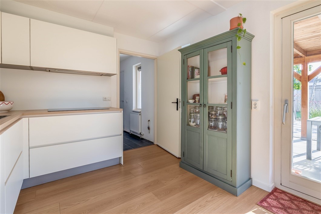 Bijkeuken, ca. 5 m², v.v. plavuizenvloer, aansluiting wasmachine, waterontharder, Combi-ketel (Kombi Kompakt HRE 36/30, bj. 2024) en doorgang naar tuin en garage.
