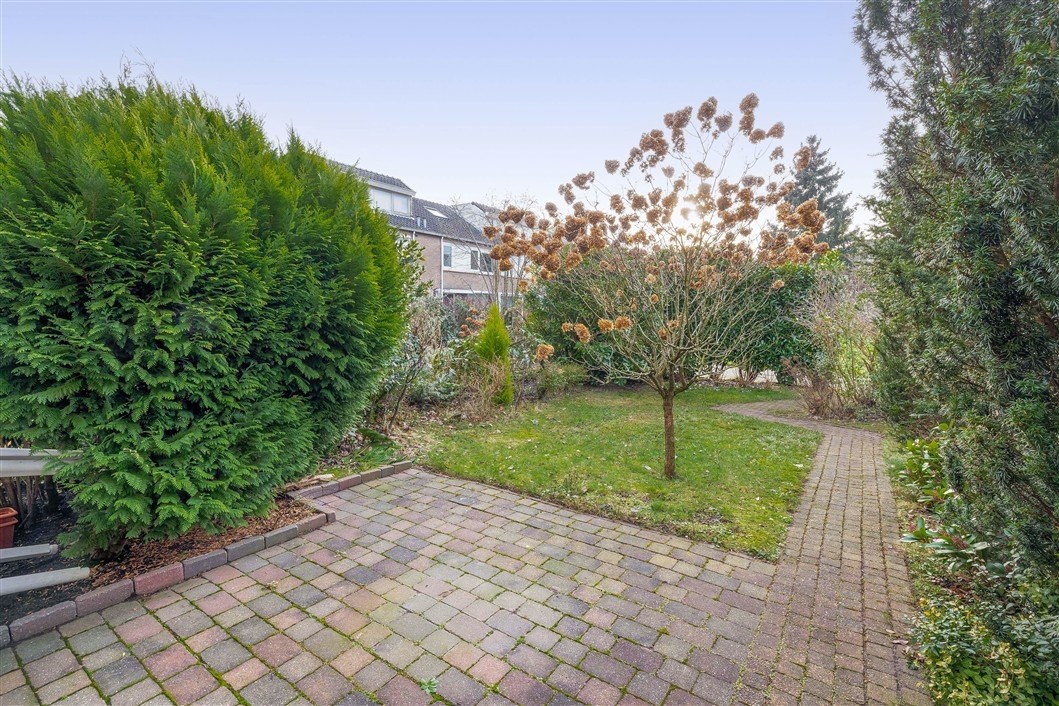 De achtertuin is gelegen op het noorden en beschikt over een terras, tuinborders en een handige achterom via een brede gang. De vrijstaande berging met elektra, ideaal voor fietsen en opslag is ook in de achtertuin gesitueerd.