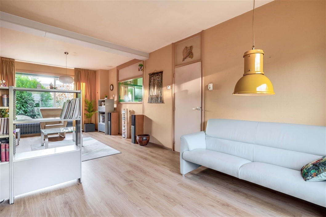Woonkamer, 29.3 m², doorzon woonkamer v.v. laminaatvloer en schuifpui naar de tuin.