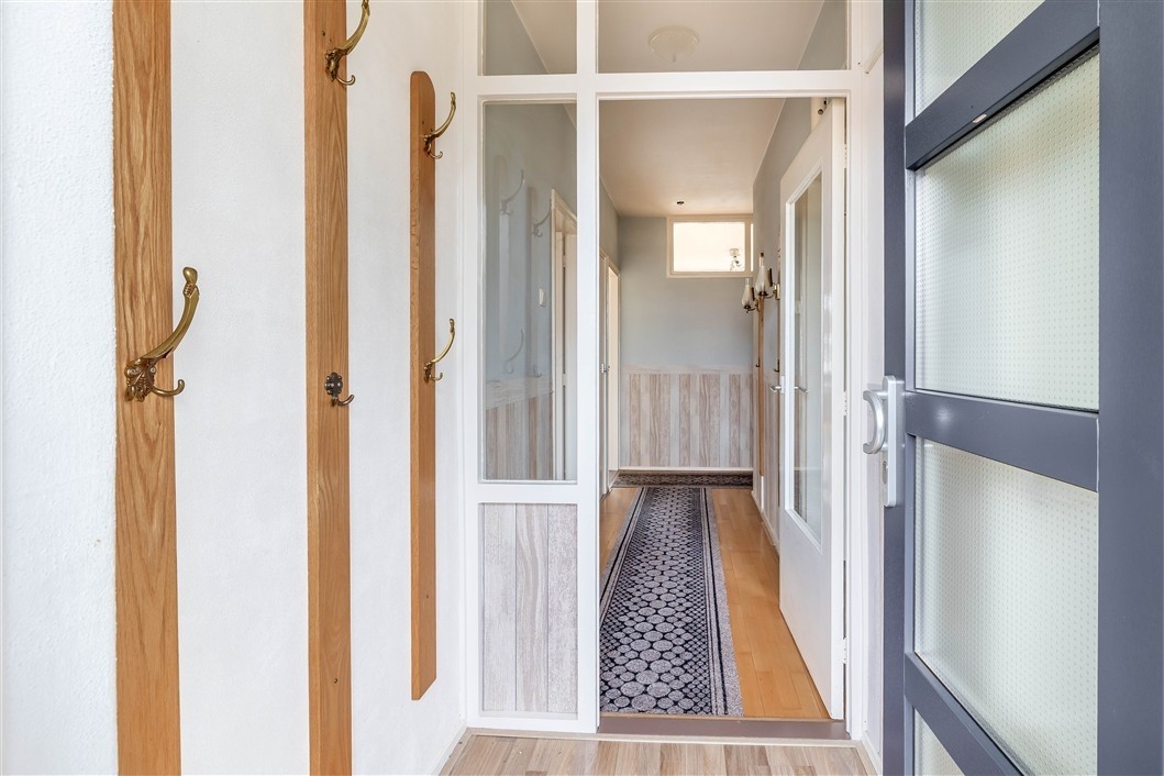 De indeling voelt logisch en ruim. Het tochtportaal leidt naar een verzorgde hal met ruime berging en een separaat toilet. De woonkamer van circa 30 m2 ontvangt veel daglicht en vormt een uitnodigende leefruimte met directe toegang tot het balkon. Dit balkon is gelegen op het zuiden biedt een fijne plek en een vrij zicht aan de voorzijde.
