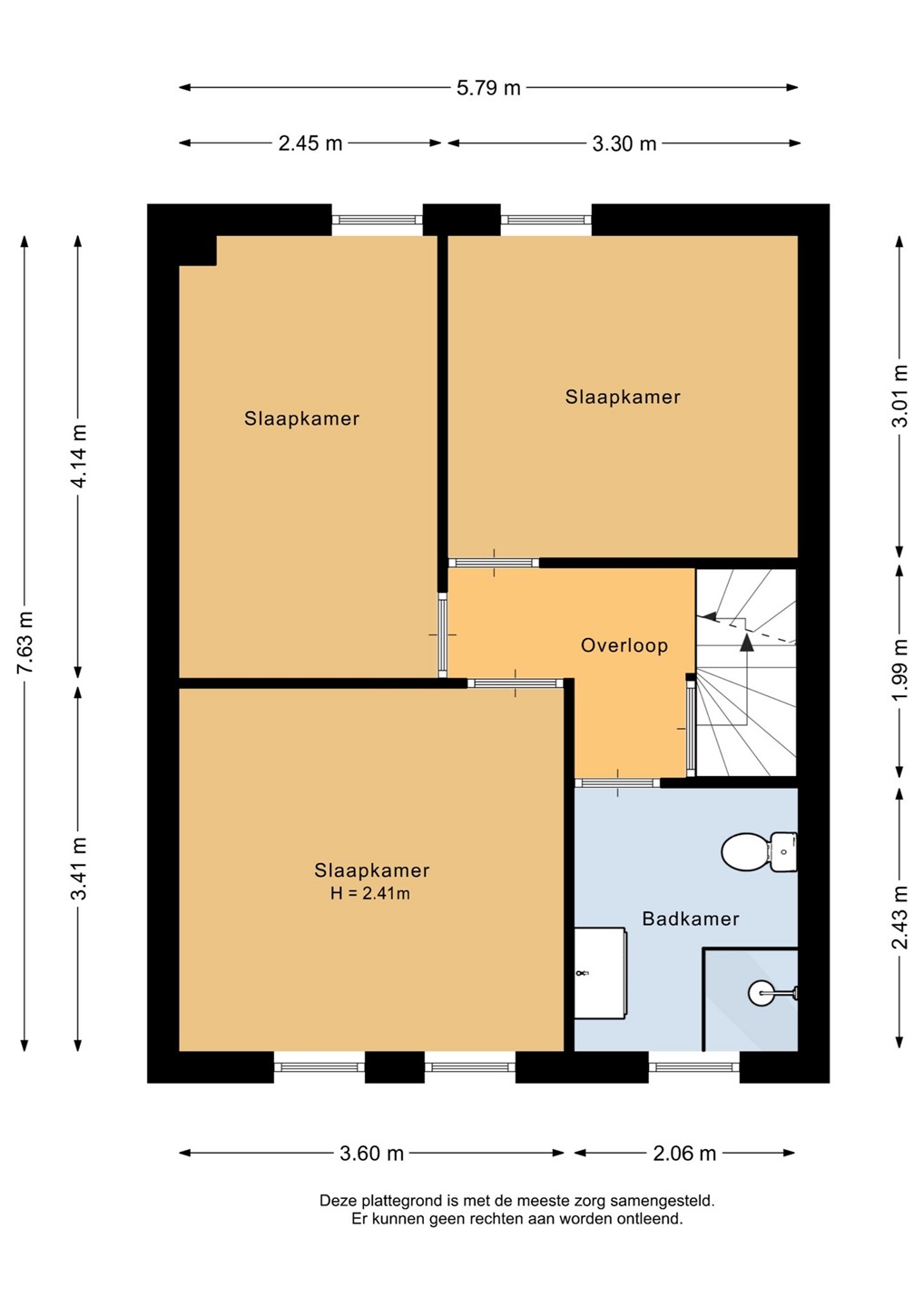 Overloop, 5 m², v.v. een vaste trap naar de zolder.