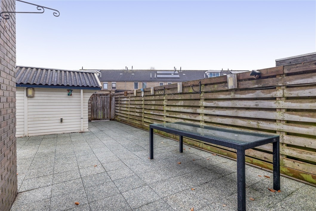 Deze fijne en ruime woning beschikt daarnaast over een onderhoudsvriendelijke tuin, ideaal voor wie graag buiten zit zonder veel onderhoud. In de achtertuin bevindt zich een tuinhuis (11,5 m²), geschikt voor opslag, hobbyruimte of fietsenberging. De voortuin is eveneens ruim, heeft een ruim grasveld en heeft daarnaast nog een fijn terras (gelegen op het Westen).
