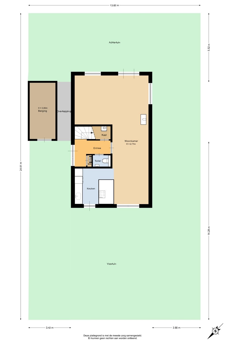 Voortuin, 61 m², gelegen op het Noordwesten en keurig aangelegd.