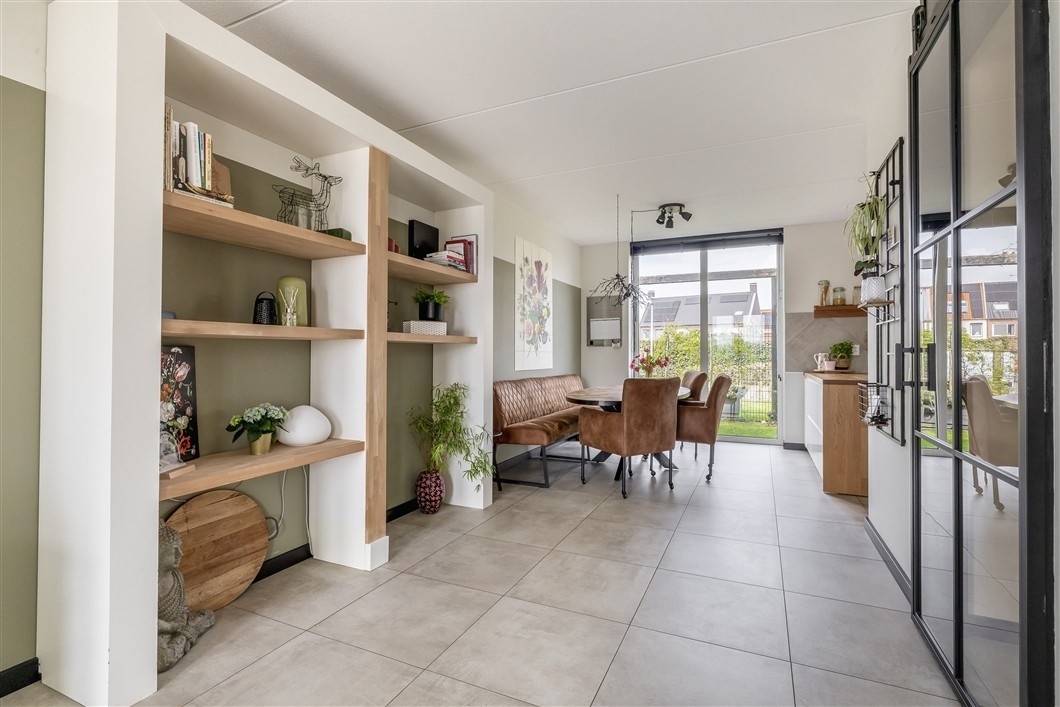 Woonkamer, 43 m², tuingericht en v.v. plavuizen met vloerverwarming en directe verbinding met de tuin.