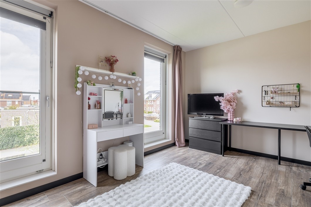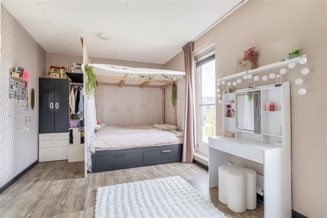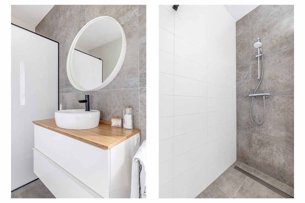 Op de eerste verdieping bevinden zich twee royale slaapkamers van circa 19 m² en 22 m². Beide kamers zijn afgewerkt met een plavuisvloer met laminaat-look en bieden volop ruimte voor slapen, werken of hobby’s. De moderne badkamer is compleet uitgevoerd met een inloopdouche met een plexiglas opaal witte wand, wastafelmeubel, toilet en vloerverwarming. Ook deze verdieping is volledig voorzien van vloerverwarming, die per kamer is in te stellen. Dit draagt zeker bij aan een aangenaam wooncomfort.