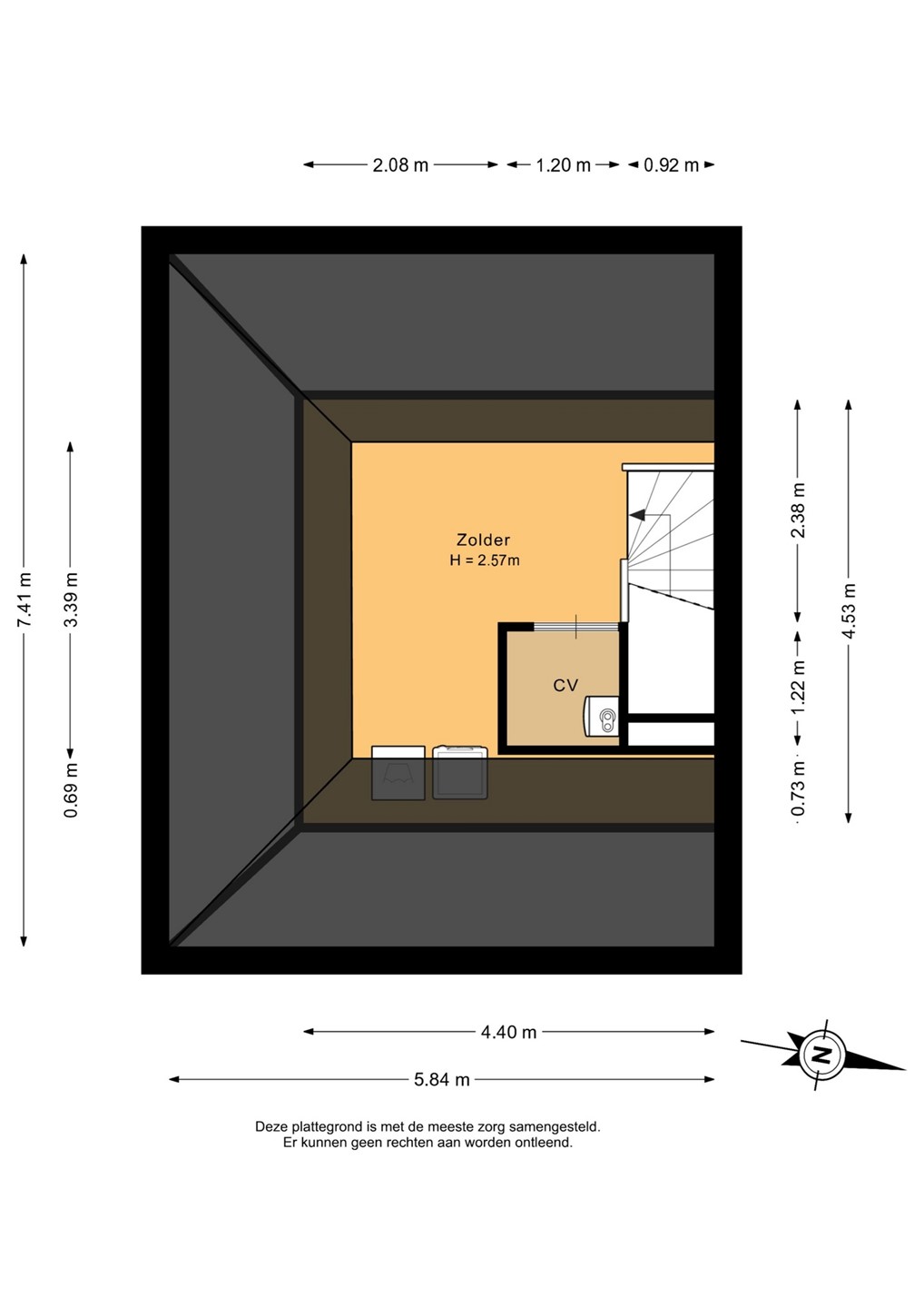 Zolder, via vaste trap bereikbaar, 13 m², op deze verdieping zijn de witgoedaansluitingen en een cv-ruimte met opstelling van de cv installatie met boiler en de mechanische ventilatie.