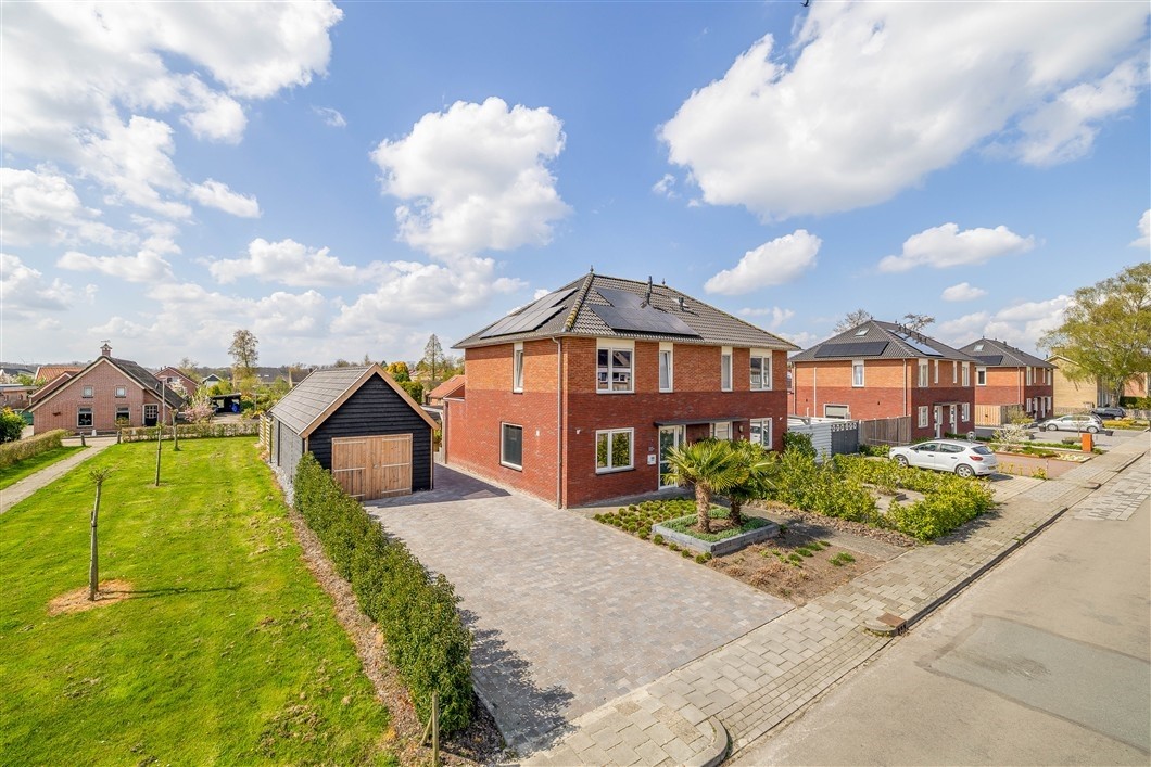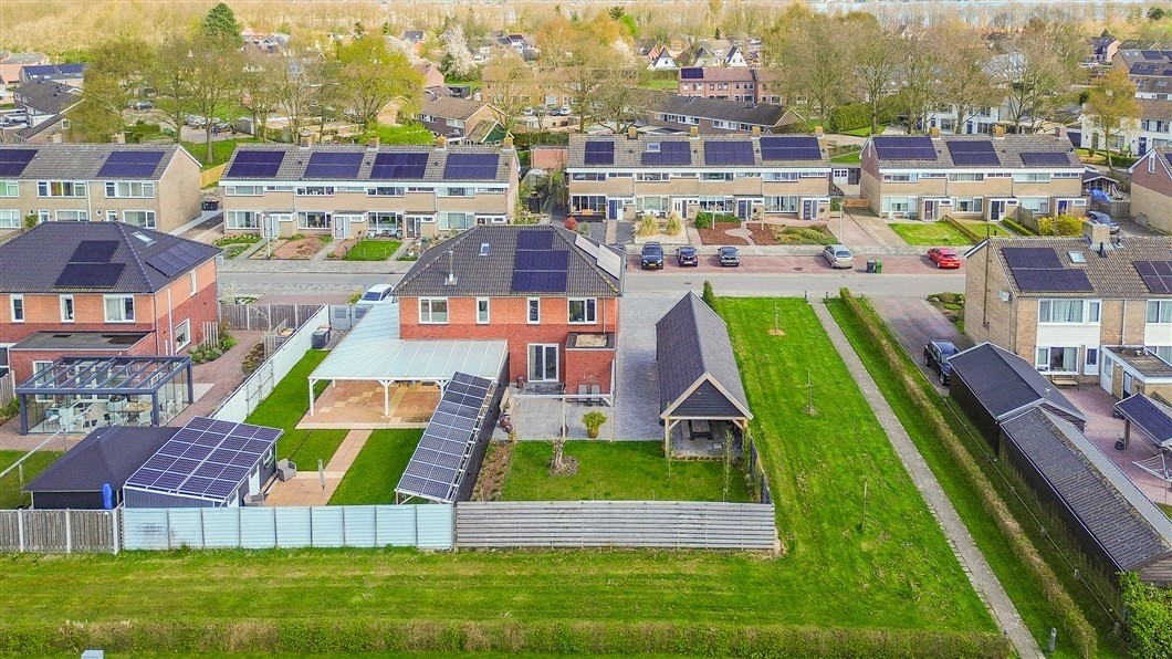 De woning beschikt over een verzorgde voor-, zij- en achtertuin. De achtertuin is gelegen op het westen en biedt meerdere terrassen, een grasveld en borders – een heerlijke plek om te genieten van de middag- en avondzon. De brede oprit naast de woning biedt parkeergelegenheid voor meerdere auto’s op eigen terrein. In 2024 is er een ruime vrijstaande houten schuur/garage geplaatst, ideaal voor opslag, hobby of stalling. Aansluitend bevindt zich een overkapping waar u beschut kunt zitten.