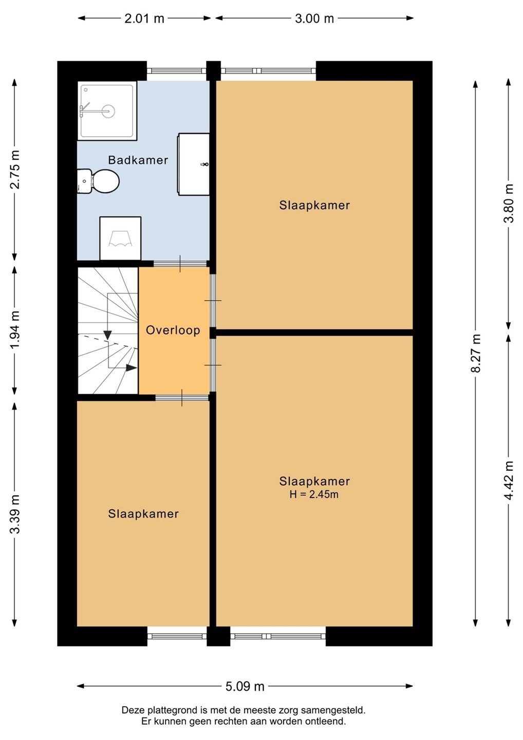 Overloop, 4 m², met vaste trap naar de 2e verdieping.