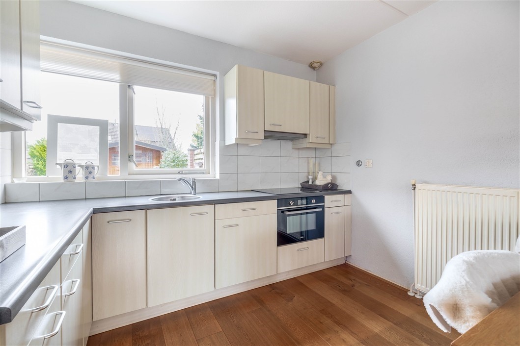 Woonkamer, 29 m², v.v. nette houten vloer, voorraadkast, gashaard en airco.