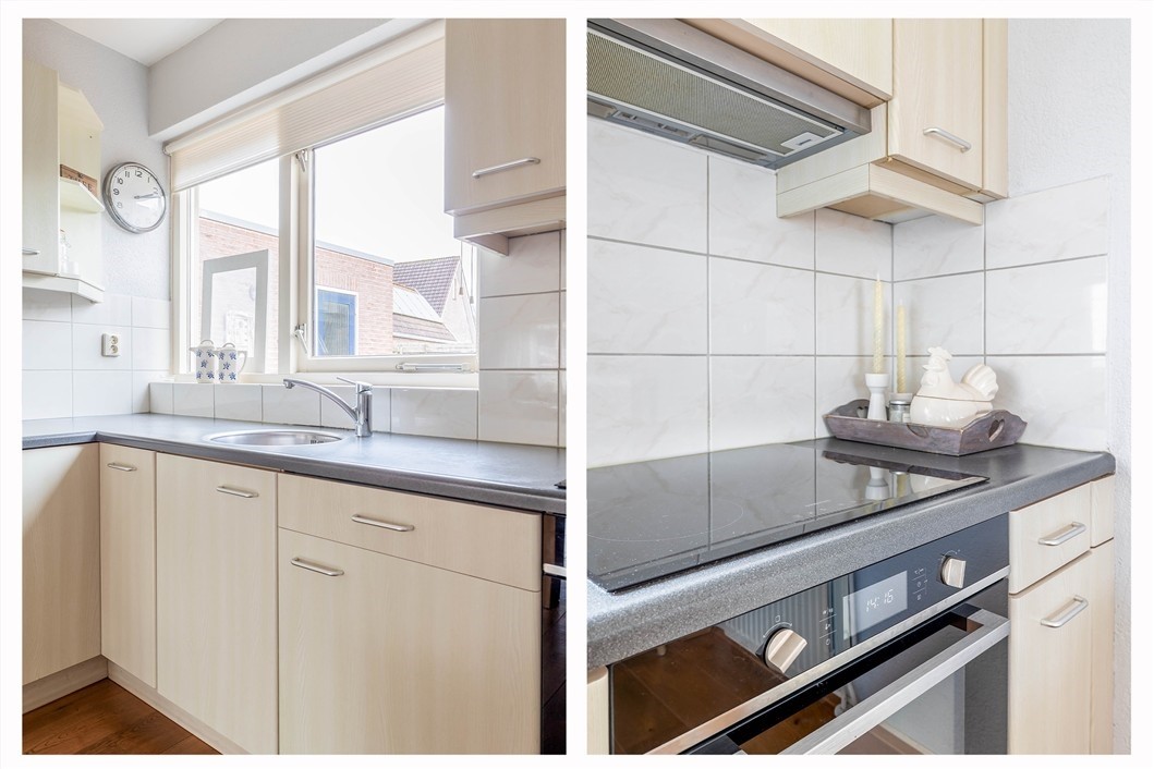 De overdekte entree geeft toegang tot de hal met toilet en trapopgang. De lichte woonkamer van 29 m² ligt aan de voorzijde en heeft een ruime indeling met grote ramen die zorgen voor een fijne lichtinval. De houten vloer geeft de ruimte een warme uitstraling. De gashaard biedt extra comfort op koelere dagen. De open keuken ligt aan de achterzijde en is in een hoekopstelling geplaatst, deze inbouwkeuken beschikt over voldoende inbouwapparatuur.