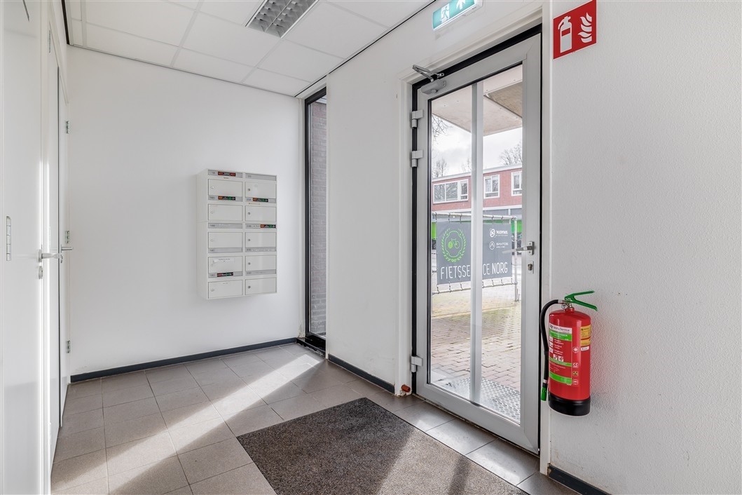 Sfeervol en licht appartement op de bovenste woonlaag met balkon, lift en eigen parkeerplaats in het centrum van Norg.