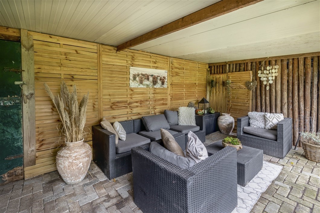 * Vrijstaande berging (ca. 18 m²) met sfeervolle overkapping (ca. 9 m²).