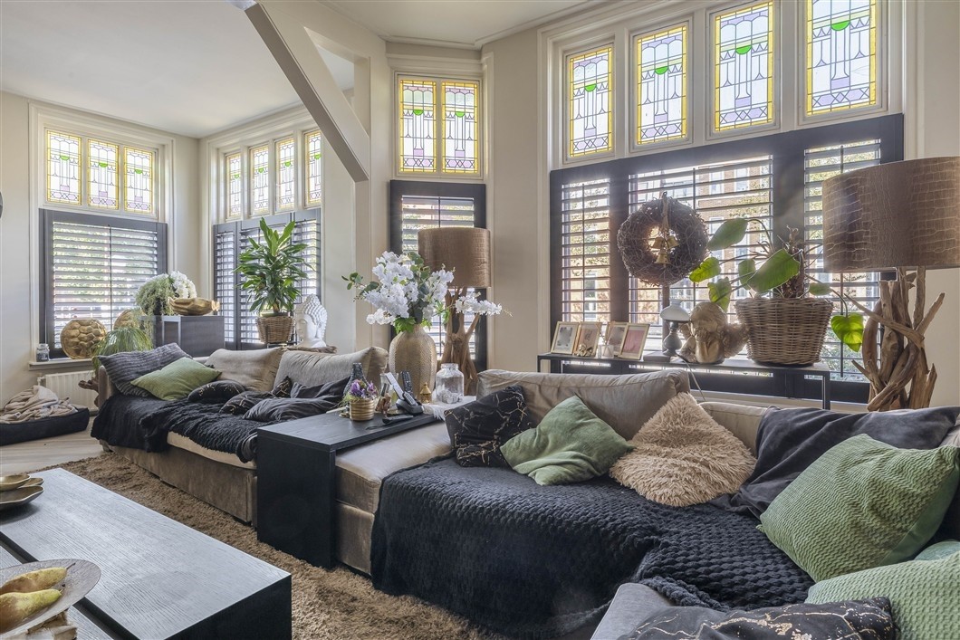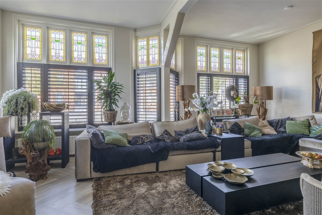 * De woonkamer is recent v.v. nieuwe stijlvolle shutters