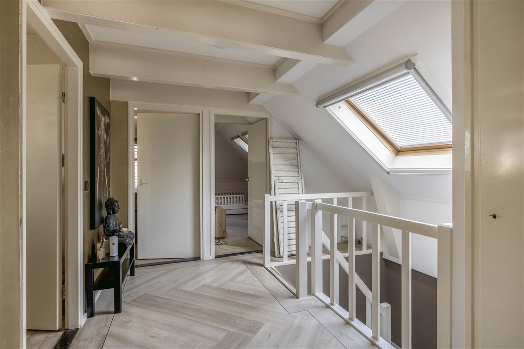 Overloop, 9 m², v.v. pvc vloer, Velux dakraam en inbouwkasten.