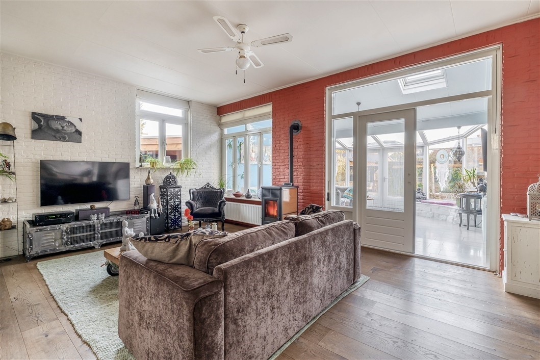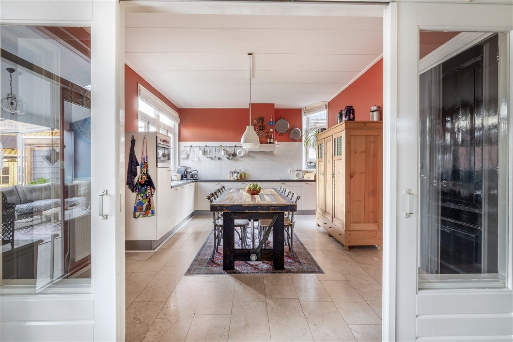 De tuingerichte woonkamer is ruim en gezellig, met een pelletkachel als sfeervol middelpunt. Aansluitend bevindt zich de prachtige serre/tuinkamer: een heerlijke plek met veel licht, open haard en openslaande deuren naar de tuin. Binnen en buiten lopen hier moeiteloos in elkaar over. De royale woonkeuken met natuurstenen vloer en complete inbouwkeuken vormt het hart van het huis – ideaal voor lange avonden tafelen met familie en vrienden.