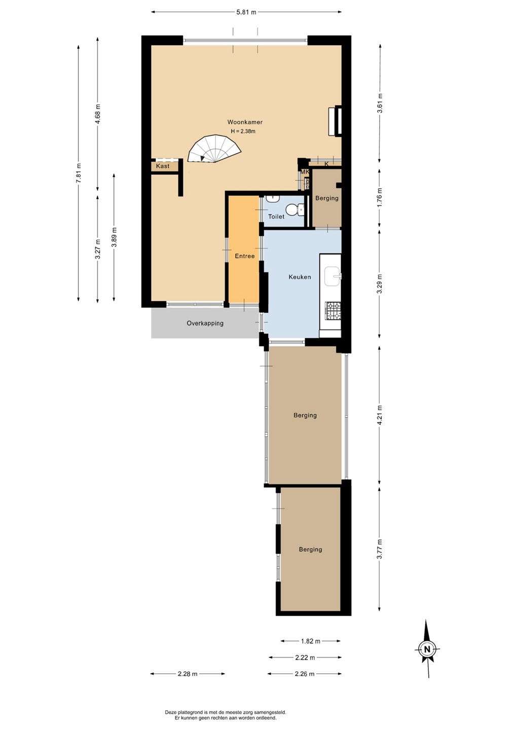 Berging (steen), 7 m², fietsenberging met o.a. de postbus en opstelling combi-ketel.