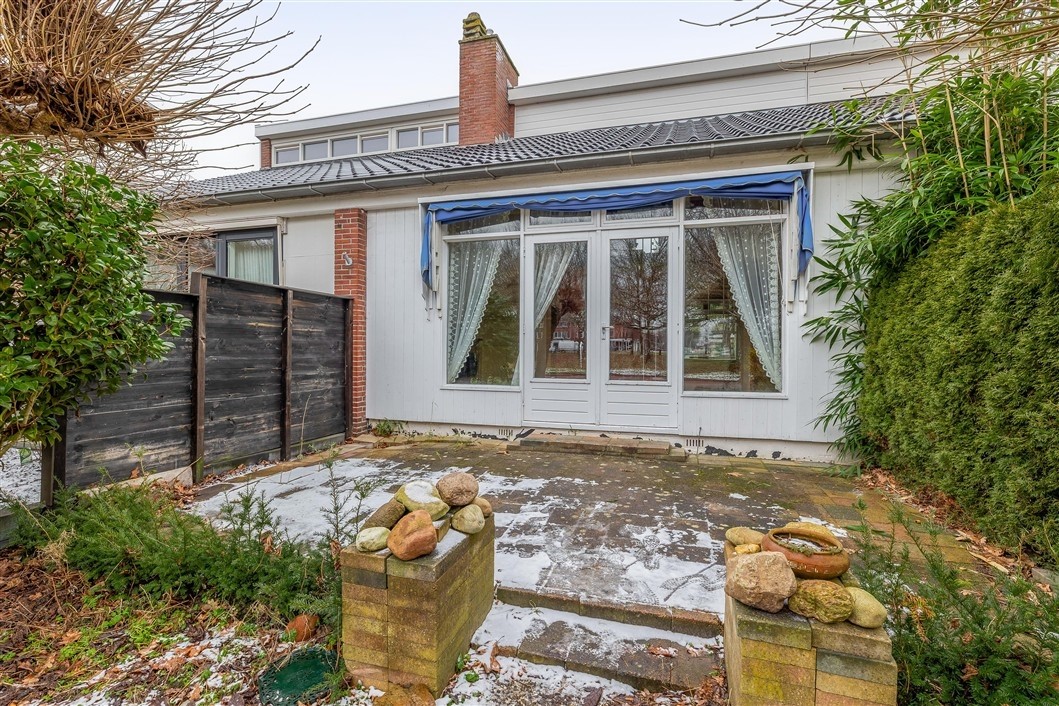 Buiten is er zowel aan de voor- als achterzijde een tuin gelegen. De voortuin is te bereiken via de woonkamer en is royaal, ligt op het zuiden en biedt een vrij uitzicht, wat bijdraagt aan het open en rustige gevoel van de woning. De achtertuin is onderhoudsvriendelijk en gelegen op het noorden. Daarnaast zijn er twee bergingen: een stenen fietsenberging met onder andere de postbus en CV-opstelling, en een houten berging met veel raampartijen grenzend aan de woning.