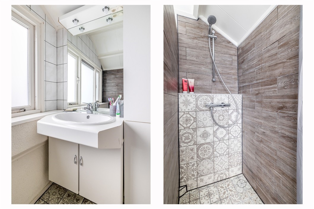2e Badkamer, 5 m² met toilet, douche, wastafelmeubel en v.v. dakkapel.
