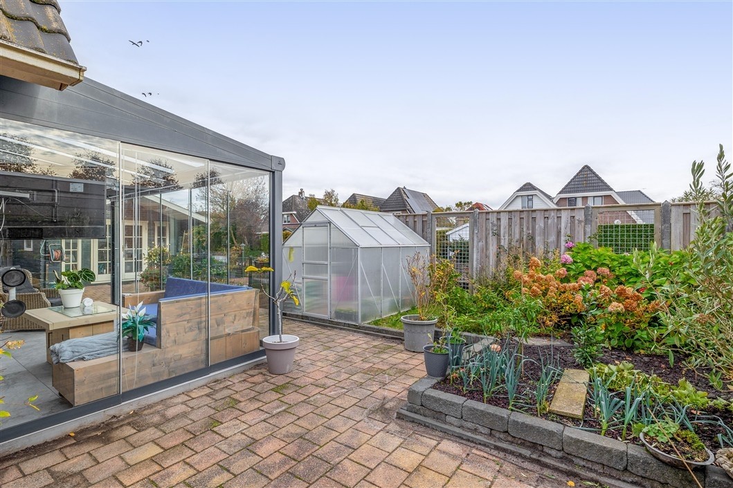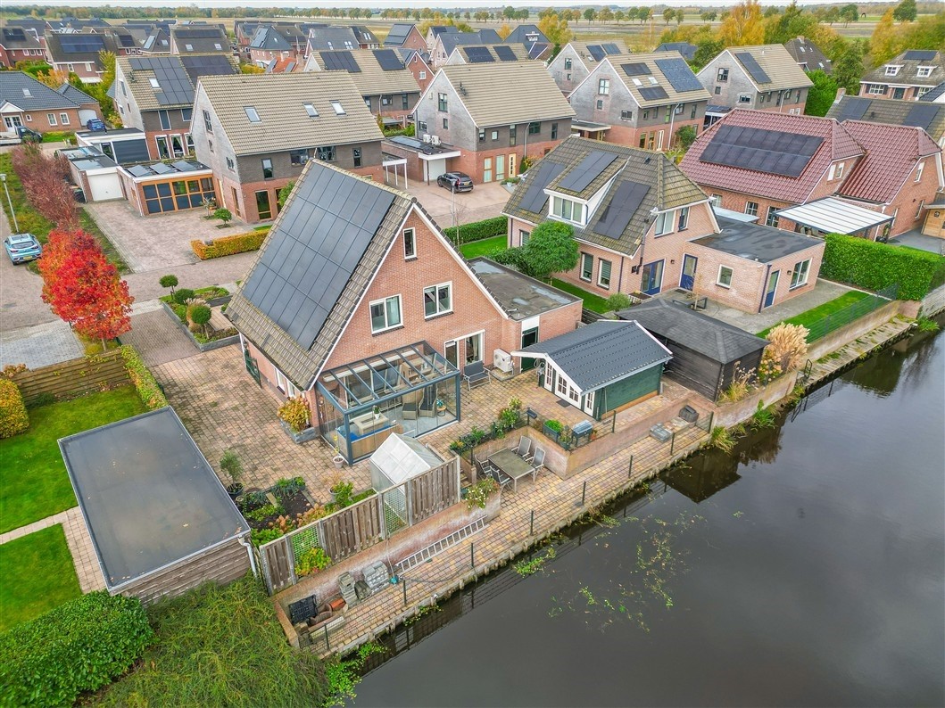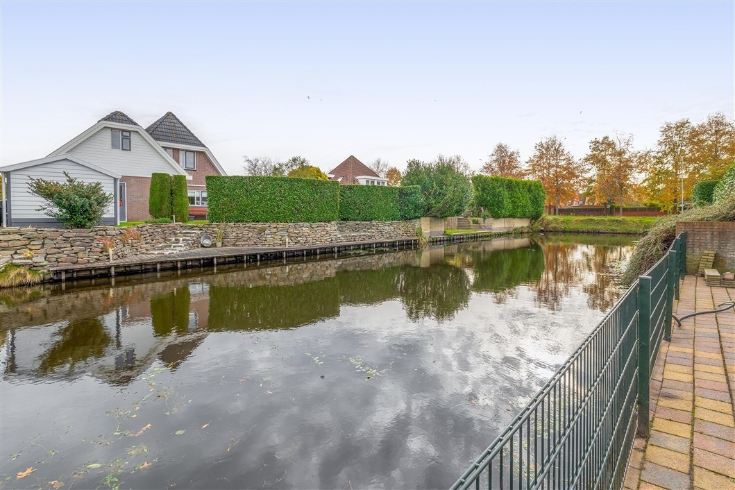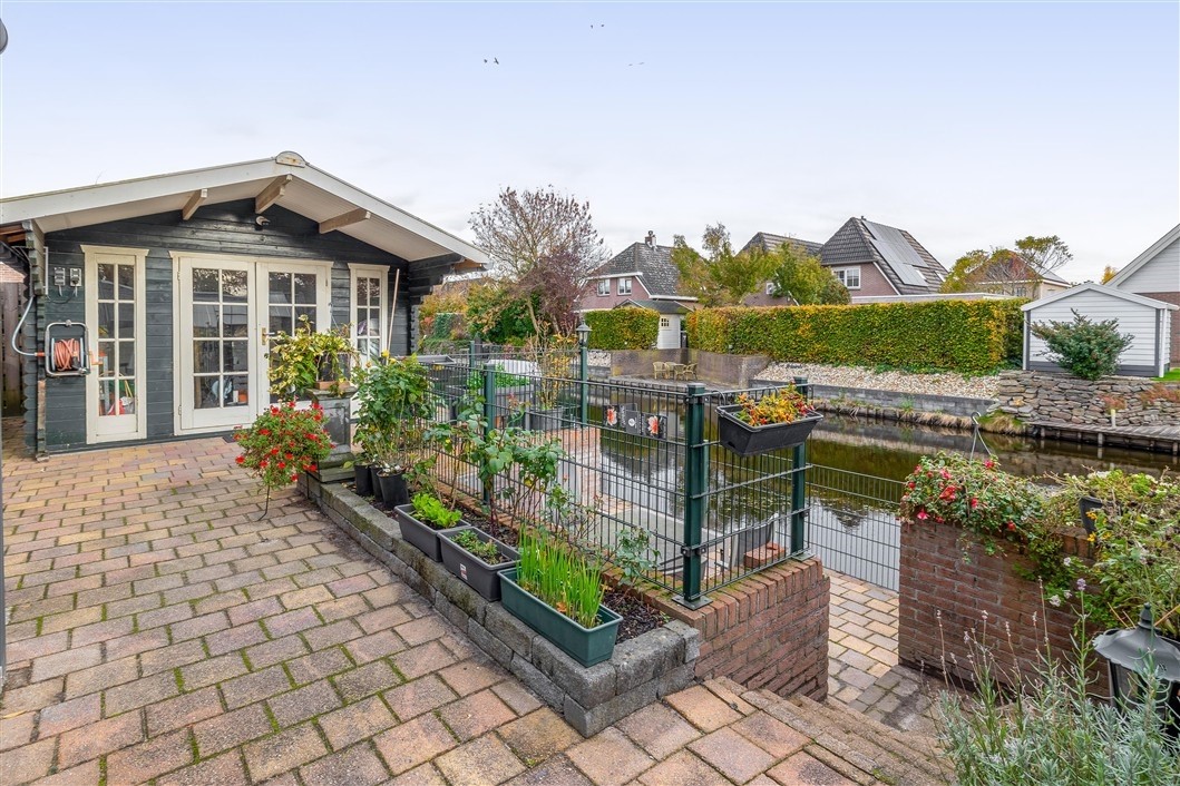 De tuin is rondom de woning gelegen en is verzorgd en netjes aangelegd, deze fijne tuin is grenzend aan het water en biedt volop mogelijkheden voor meerdere zitplekken. Dankzij de ligging is er altijd een plek in de zon of schaduw te vinden. In de achtertuin staat een houten blokhut van 13 m² die extra bergruimte biedt. De voortuin en oprit zijn netjes aangelegd en dragen bij aan de verzorgde uitstraling van de woning.