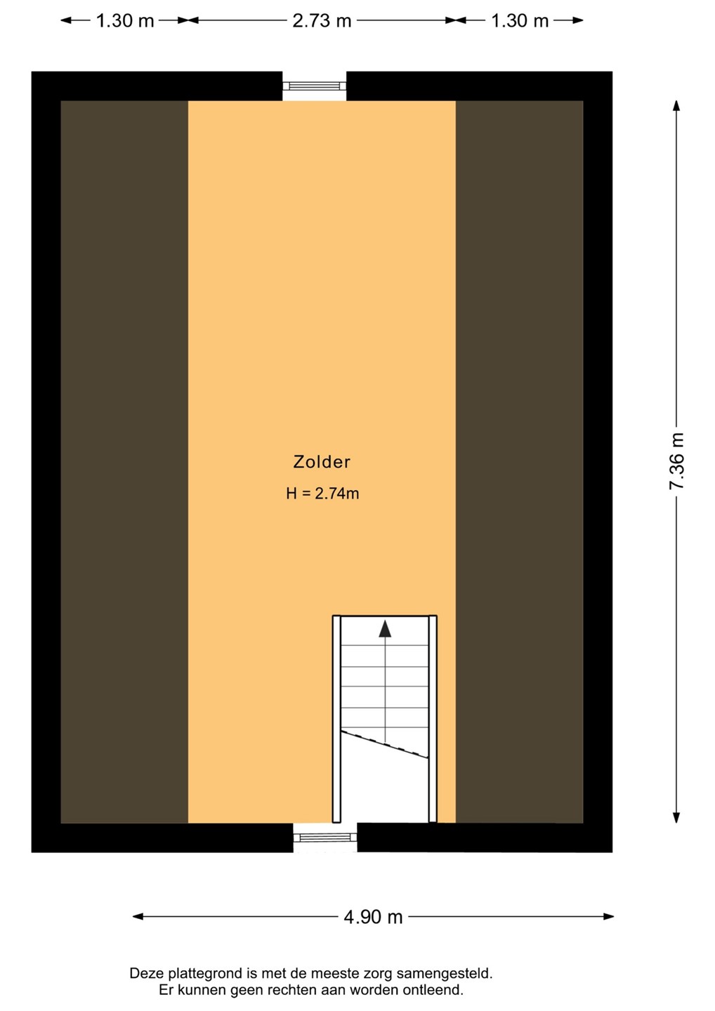 Zolder, 20 m², niet ingedeeld en met ruimte voor nog 2 slaapkamers.