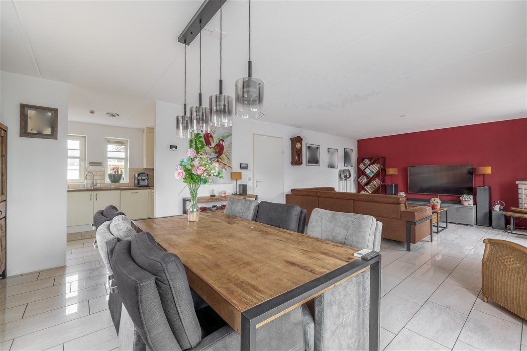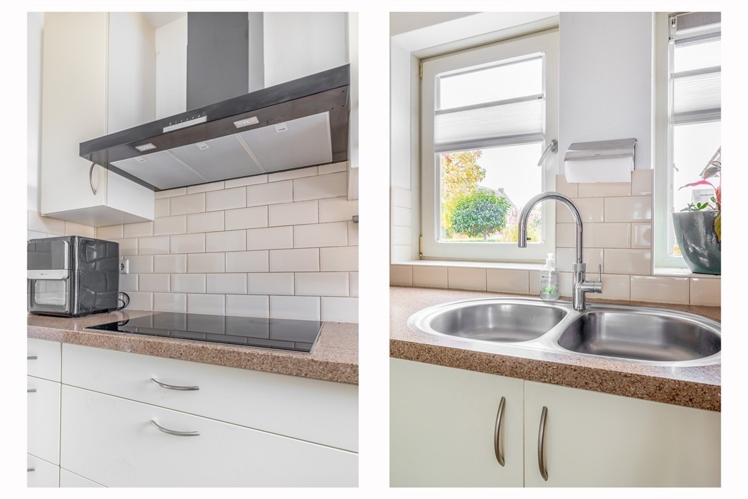 De keuken is in een praktische opstelling geplaatst en uitgerust met moderne inbouwapparatuur, waaronder een inductiekookplaat, afzuigkap, combi-oven, koelkast, vaatwasser, Quooker en een dubbele spoelbak. Via de hal bereikt u de bijkeuken met aansluitingen voor het witgoed en via deze bijkeuken is binnendoor de aangebouwde garage van 29 m² te bereiken. De garage is voorzien van een elektrische deur en biedt volop ruimte voor opslag en uw auto.