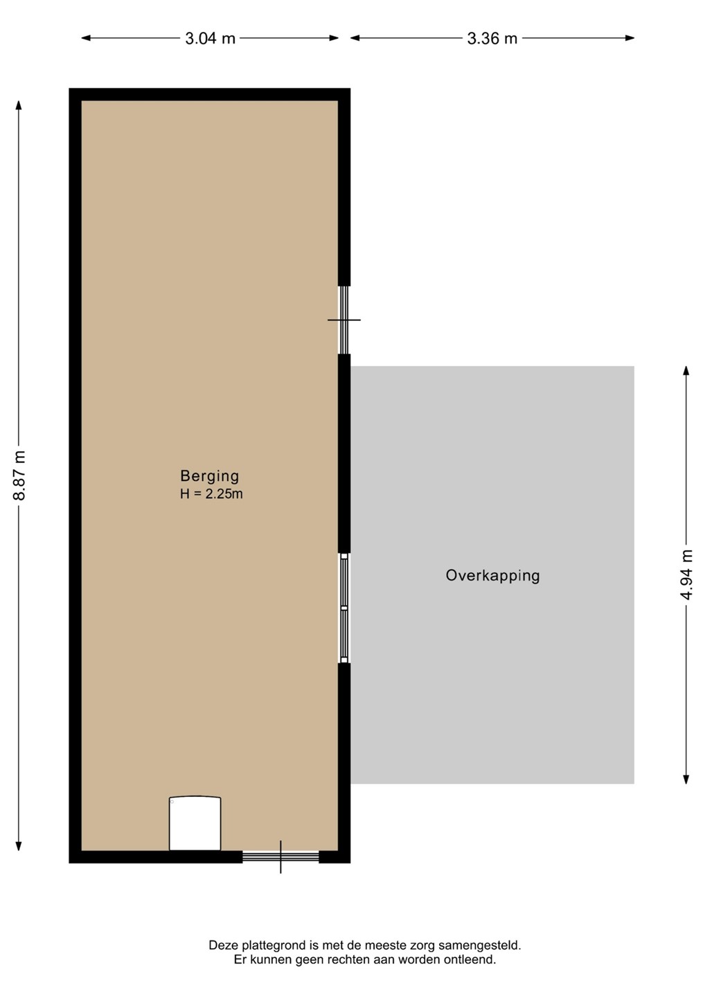 Hier treft u een royale stenen schuur (27 m²) en een gezellige overkapping van hout. (4.3 x 3.7 m)