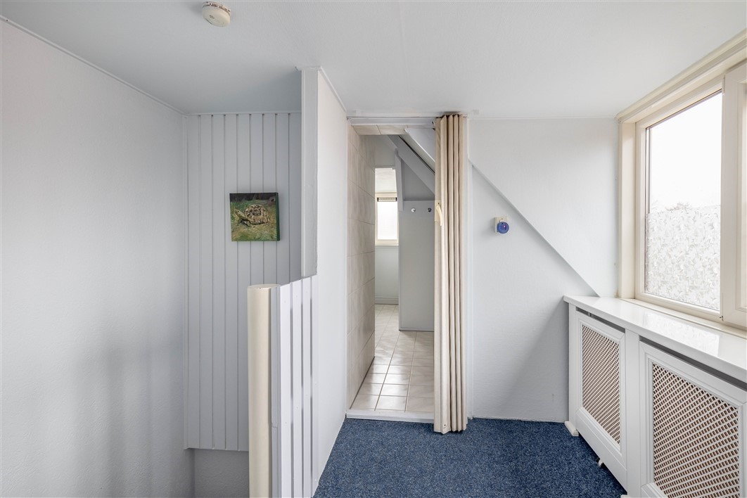 Op de eerste verdieping vindt u een overloop, twee slaapkamers van respectievelijk 13 m² en 12 m², en een toilet met wastafelmeubel. De royale aanbouw uit 1996/1997 heeft deze verdieping extra ruimte en comfort gegeven. Via een vaste trap bereikt u de tweede verdieping, waar een 4e slaap/werkkamer m² met aansluitend zolderberging en een badkamer met douche en wastafel te vinden zijn.