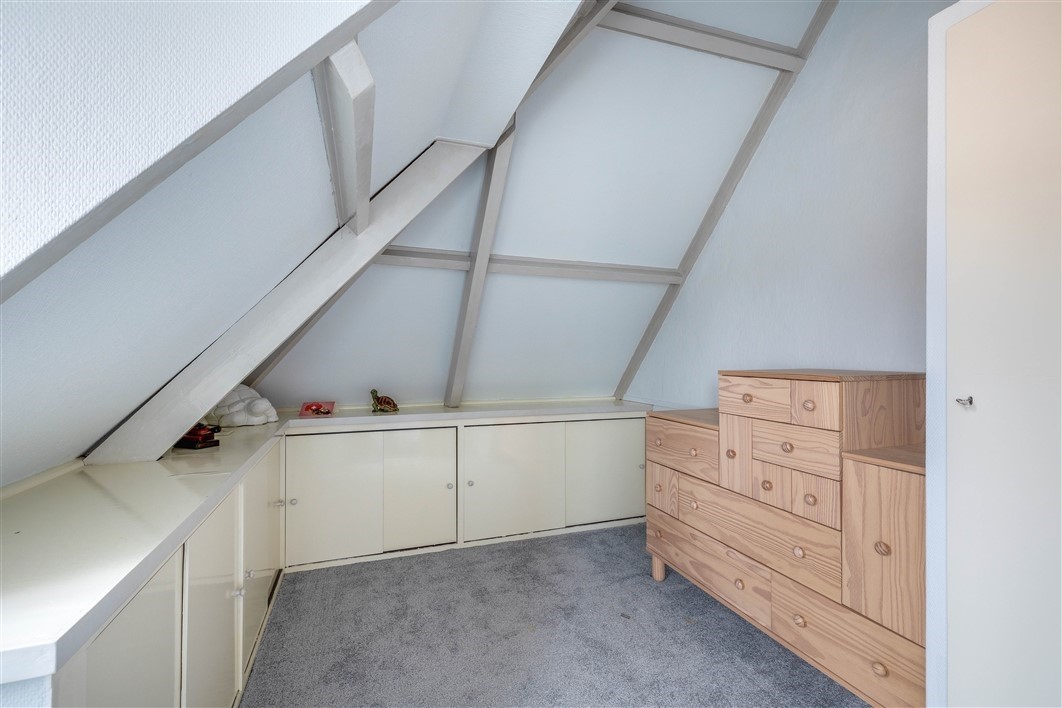 Slaap-/werkkamer, ca. 4,2 m², met toegang tot extra bergruimte/zolder.