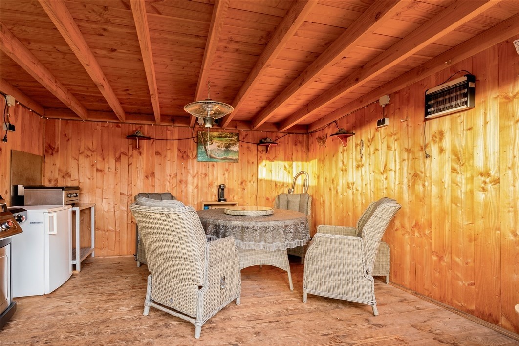 * Gezellige overkapping en bruikbare stenen schuur.