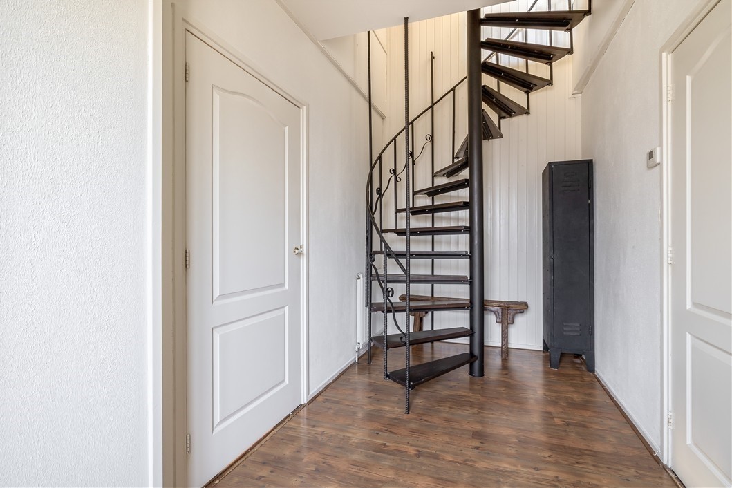 Deze sfeervolle woning is te betreden middels de zij-entree en biedt toegang tot de ruime hal met wenteltrap n...