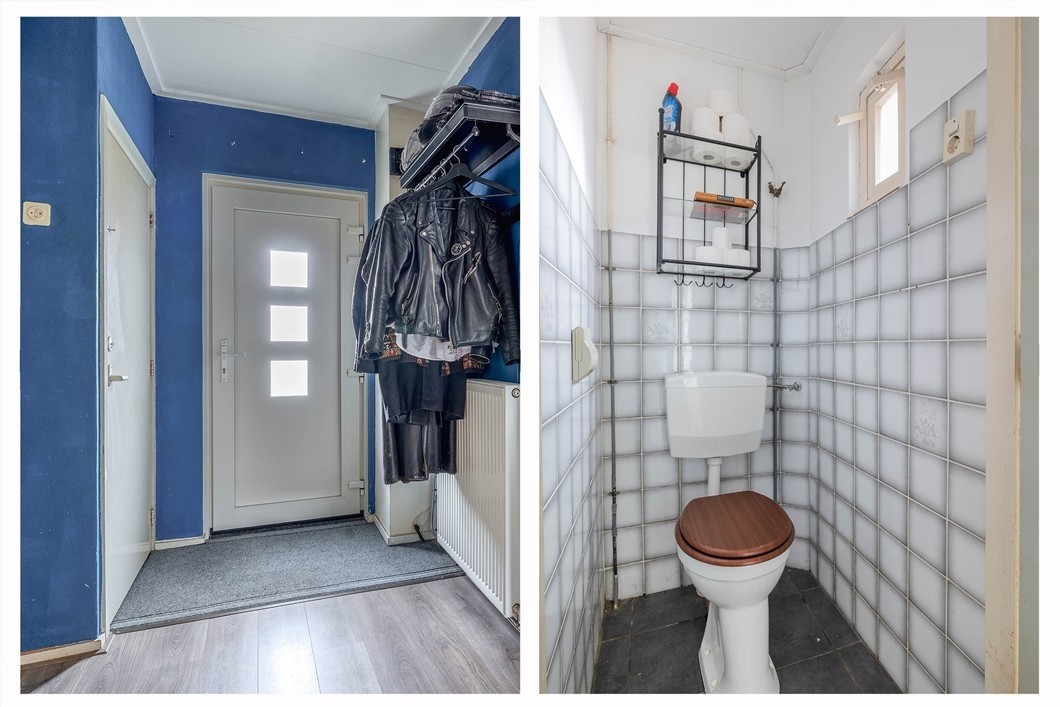 Bij binnenkomst voel je meteen de prettige sfeer. De entree biedt toegang tot de praktische kelder – altijd fijn voor extra bergruimte. Het toilet is voorzien van natuurlijke ventilatie. De doorzonwoonkamer (21 m²), afgewerkt met een nette laminaatvloer, is licht dankzij de grote ramen aan beide zijden.