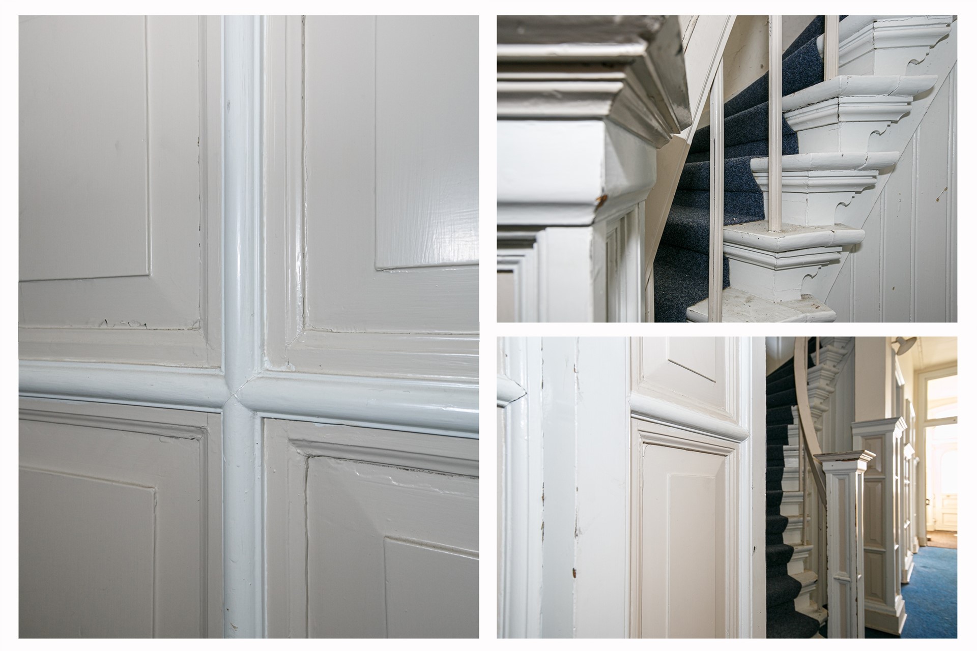 • Wanden en plafonds: Strak afgewerkt met aandacht voor akoestiek en sfeer, met behoud van authentieke details waar mogelijk.